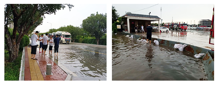 特别是近日,天津连降暴雨,市内道路多有严重积水,对安达集团来说,受灾最严重的当属位于东丽开发区的安达物流公司,因降雨量大,路面排水不畅,造成物流厂院内出现雨水倒灌现象,为防止积水对院内停放的众多商品车造成损害,安达物流总经理郑玉强、副总经理田荣强,协同各相关部门负责人积极应对。一方面抽调员工抽排院内积水,一方面筹措沙袋和挡水板对院外积水进行拦阻;并在第一时间联系开发区管委会,协调相关排水部门将道路积水抽空排干。经过多方共同努力,基本将库区内的潜在隐患全部排除。