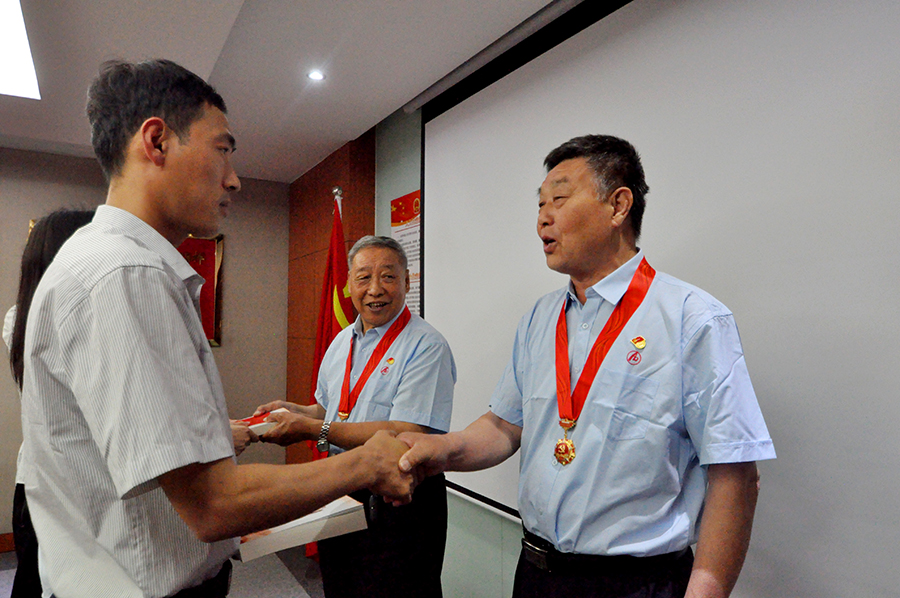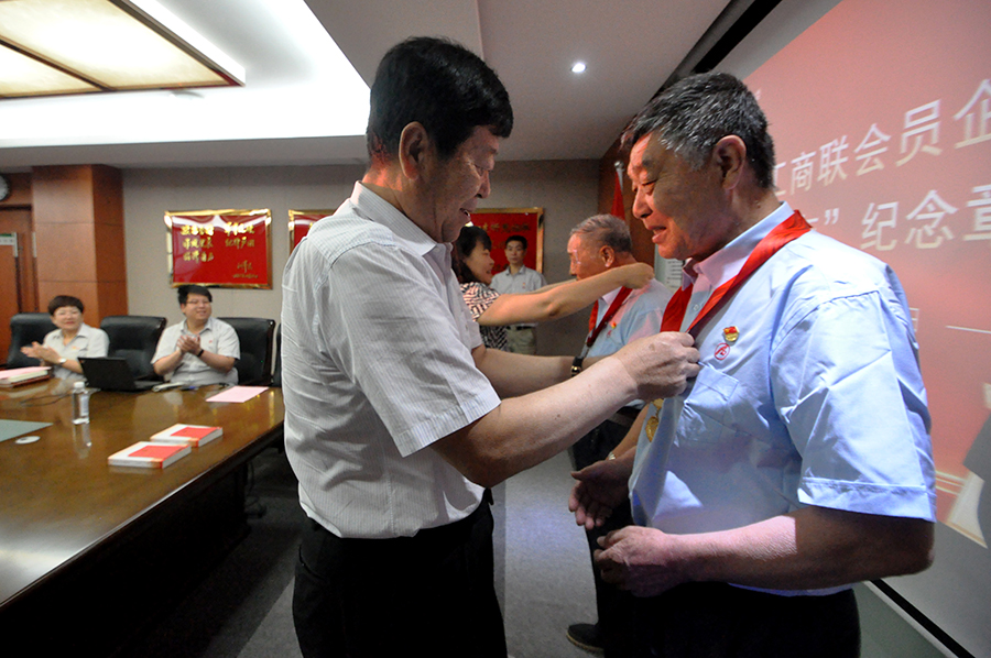 在颁发仪式上,全体党员高唱国歌,一起重温入党誓词,区工商联会员企业党委副书记李春节,安达集团党委书记、董事长崔洪金,向党龄达到50周年的两名老党员颁发“光荣在党50年”纪念章。与会全体党员以热烈的掌声,向老党员50年来的无私奉献和革命本色致以崇高的敬意。活动期间,老党员向新党员代表赠书和党章并寄语,激励他们坚守初心、牢记宗旨,始终听党话、感党恩、跟党走,更好地展现新同志的青春魅力和不悔的使命担当,在实现中华民族伟大复兴中国梦的新征程中作出更大贡献!