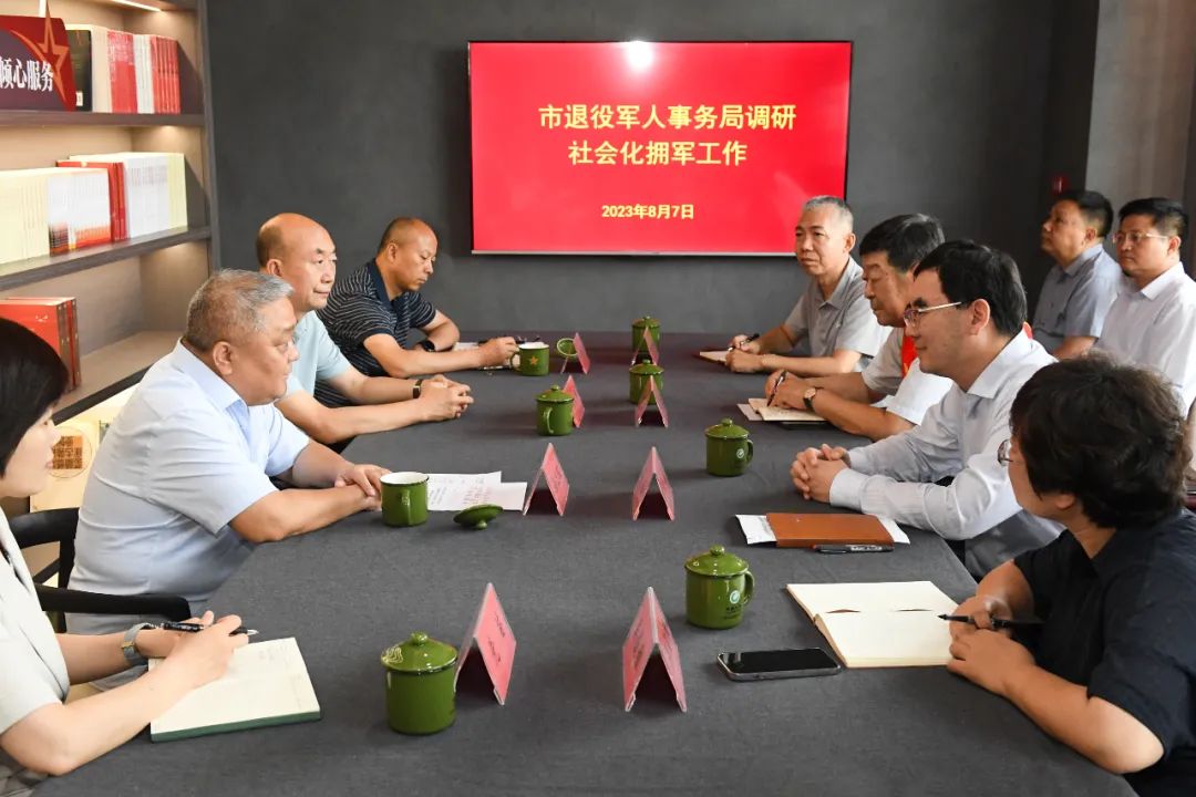8月7日,市退役军人事务局党组书记、局长孙宏波带队到我区调研社会化拥军工作,鼓励企业做大做强,为天津市社会化拥军工作发挥模范带头作用。区委副书记、区长李春陪同。孙宏波在李春的陪同下,察看企业运营情况,随后,主持召开座谈会,听取区退役军人事务局关于老兵茶空间建设使用情况及“社会化拥军+”工作介绍,安达集团股份有限公司党委书记、董事长崔洪金作为2023年全国“最美拥军人物”讲述了他积极投身拥军事业的事迹。