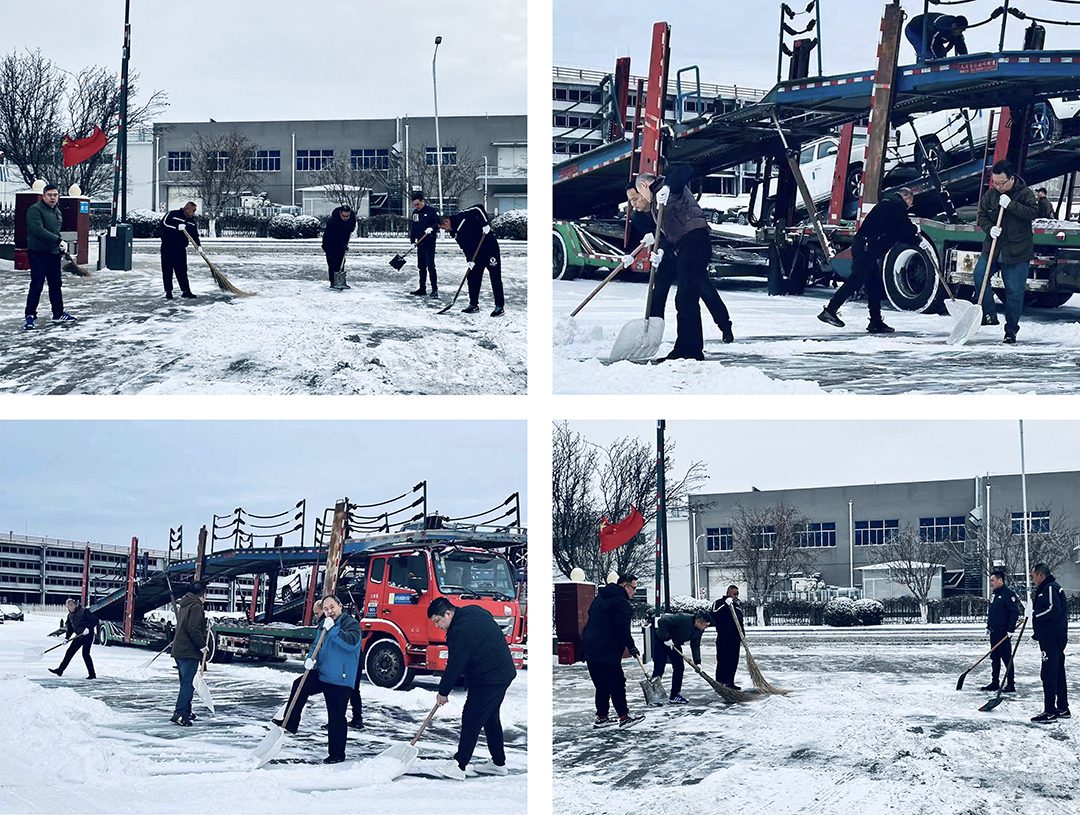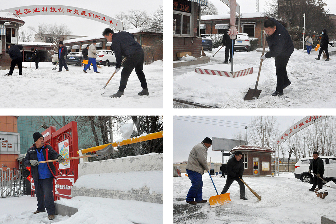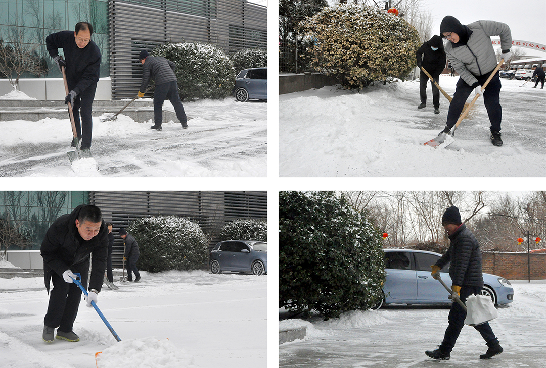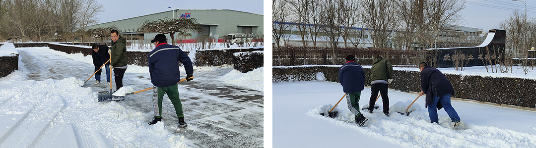 20日-21日晨,受大范围寒潮影响,我市大部分地区出现中到大雪,翩然而至的龙年第一场春雪为春节期间的城市平添了几分浪漫与诗意,但雪景虽美,也为人们的出行和工作带来诸多不便。为保障员工们安全出行,21日一大早,安达集团本部及各子公司厂院内,各单位员工在相关领导带领下,手拿铁锹、扫帚、簸箕等工具,对办公楼门前区域和厂区内重要作业点位开展积雪大清扫活动。瑟瑟寒风,“断崖式”降温,无不显示着倒春寒的“威力”,安达人不畏严寒,“浴”雪奋战,大家拧成一股绳,全力除雪,用行动完美诠释着“团结就是力量”。