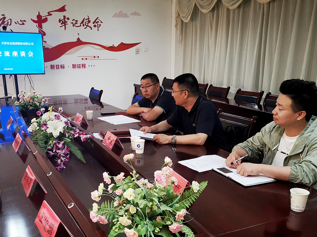 当天下午,库尔勒市政府副市长杨松波、库尔勒市商务和工业信息化局党组书记、副局长王伟,库尔勒市退役军人事务局、市容环卫事务中心、商工局、上库高新产业技术开发区分管领导与安达集团党委书记、董事长崔洪金,安达集团董事长助理王俊鹏,安达集团分公司天津鸿达精工机械有限公司经理庄儒国以及财金城仓(库尔勒)环保科技有限公司副总经理吴江涛共同参加座谈会。