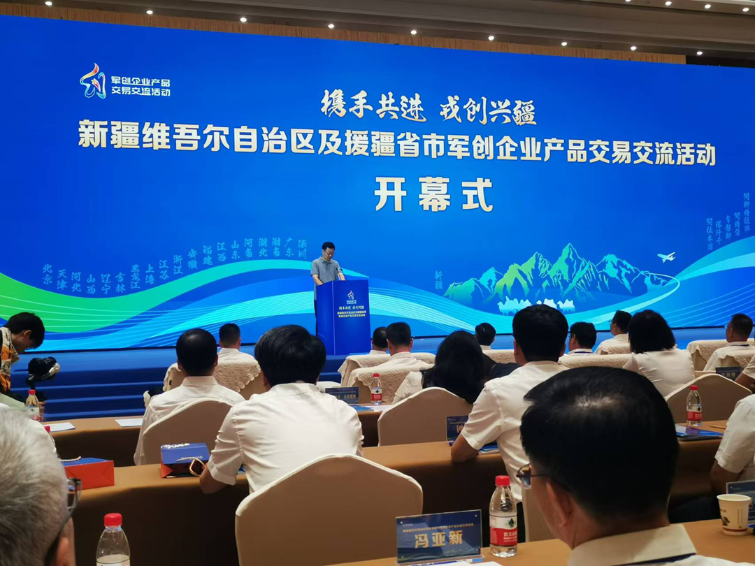 8 月 30 日,备受瞩目的自治区及援疆省市军创企业产品交易交流活动在新疆国际会展中心盛大开幕。本次活动紧扣 “携手共进 戎创兴疆” 的主题,以线下实体展与线上直播展同步推进的创新模式,为退役军人创业创新成果提供了全方位的展示舞台。通过丰富多样的产品展览、深入的交流互动以及集中签约等活动,精心搭建起了一个集展示交流、产品推介、项目对接等多功能于一体的综合推介平台,全力助推军创企业踏上健康发展的快车道。