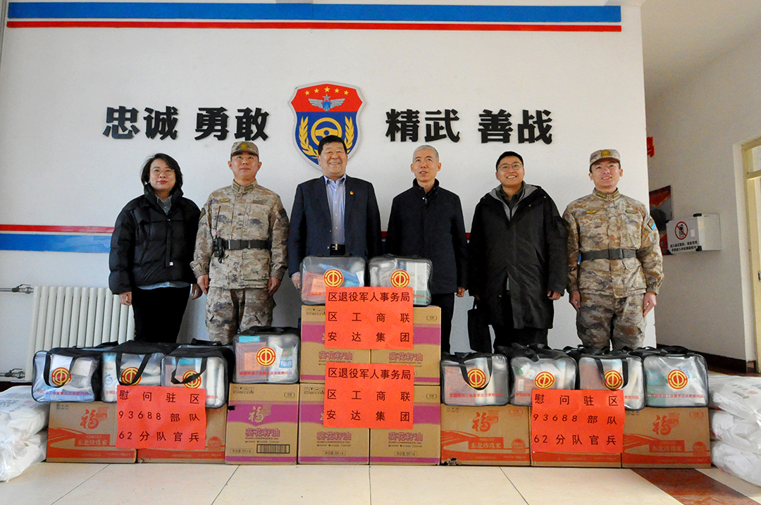 新春佳节来临之际,处处洋溢着喜庆氛围。为表达对驻区部队的崇高敬意和新春祝福,近日,全国最美拥军人物、安达集团党委书记、董事长崔洪金分别前往驻区93688部队52分队和62分队开展慰问活动,为部队官兵送去米面粮油等生活必需品,东丽区双拥办主任、退役军人事务局局长曹砚海、区工商联相关领导一同前往。
