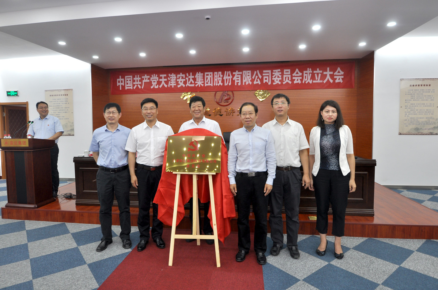 会上区工商联调研员会员企业党委委员刘树义宣读有关爱游戏官方网站党委成立的批复,市工商联党组书记刘道刚携手区委副书记白凤祥共同为安达集团党委揭牌,安达集团党委书记董事长崔洪金发表讲话。